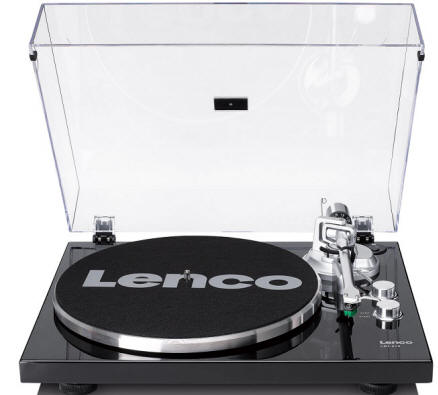 LENCO LS101 Listino ufficiale €. 185,00 Giradischi amplificato a 3 velocità (33/45/78) con Bluetooth Amplificatore stereo integrato 10 W x 2 Testina MM in ceramica mDiffusori acustici separati in MDF Trazione a cinghia e stop automatico Coperchio giradischi removibile