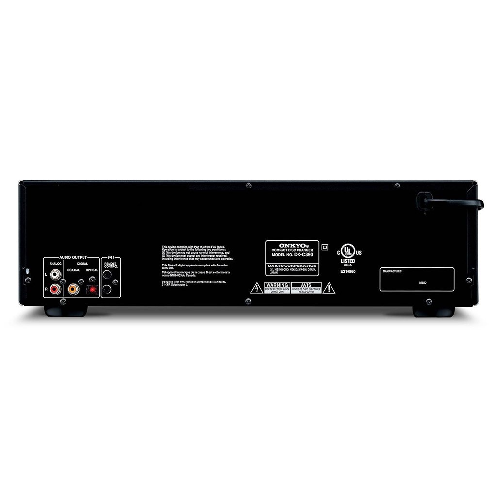ONKYO DX-C390 Listino ufficiale €. 400,00 Lettore CD Audiophile dotato di sistema di caricamento simultaneo fino a 6 dischi, con riproduzione senza interruzioni, sei modalità di ripetizione, programmazione playlist fino a 40 brani e funzioni Random e Repeat - circuito di conversione digitale/analogico con percorso di segnale diretto ultra schermato Direct Digital Path, clock al quarzo allo stato dell'arte con timing di elevatissima precisione, tecnologie VLSC (Vector Linear Shaping Circuitry) e VQA (Vector Quantizer Audio) in grado virtualmente di eliminare i rumori e gli artefatti digitali implicitamente generati da qualunque processo di conversione digitale/analogica, DAC Multi-bit Texas Instruments 32 bit / 384 kHz con Oversampling 128x - chassis anti-risonante con elegante pannello frontale in alluminio spazzolato - compatibile con supporti Audio CD, CD-R, CD-RW e file in formato MP3 masterizzati su disco - uscite digitali: 1x) S/PDIF coassiale elettrica RCA, 1x) ottica Toslink - uscite analogiche L/R sbilanciate RCA - porte RI (Remote Interactive) per il controllo remoto integrato con altri dispositivi Onkyo - risposta in frequenza 5 Hz - 20 kHz - rapporto segnale/rumore 107 dB - distorsione armonica totale (THD) 0,004% - gamma dinamica 100 dB - telecomando in dotazione - finitura Black (nera) - dimensioni (L x A x P) 435 x 131 x 432 mm - peso 6,8 Kg